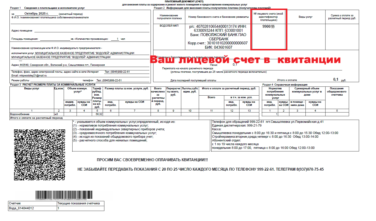 После ввода ЛС ниже появятся ваши счётчики и прошлые показания.